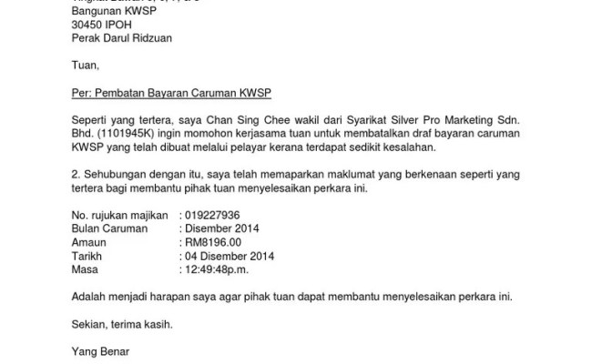 Contoh surat aduan caruman kwsp download kumpulan gambar.